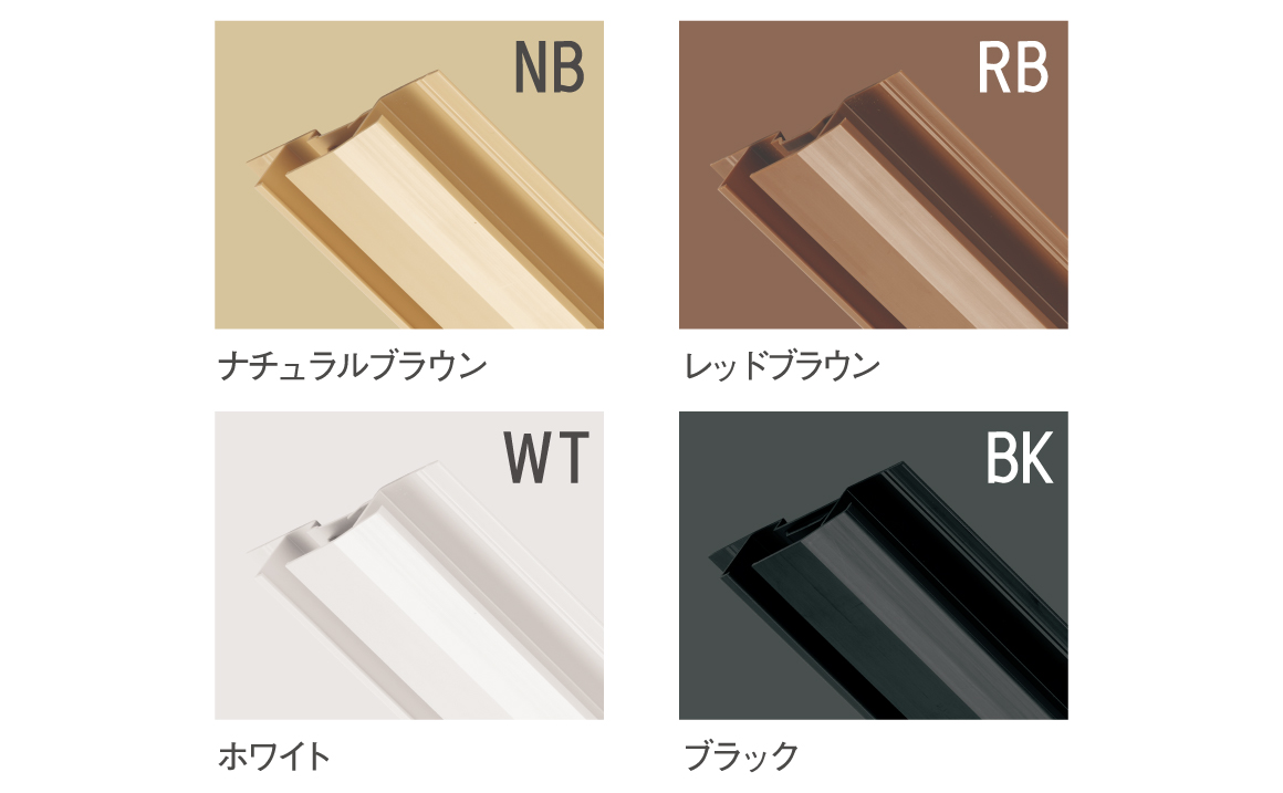 - ホワイト(WT)・ブラック(BK)・ナチュラルブラウン(NB)・レッドブラウン(RB)